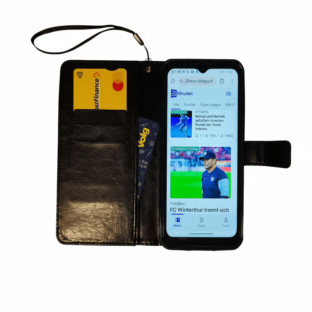 Diese Premium Textilleder Hülle hat zudem 3 kleine Fächer für Karten / Geld (siehe Fotos), zusätzlich ein grosses Fach und einen Magnet-Verschluss. Weiter ist eine Halteschlaufe dabei, damit das Smartphone nicht aus der Hand fallen kann. Die Kamera steht bei dieser Hülle nicht hervor und ist daher perfekt geschützt.